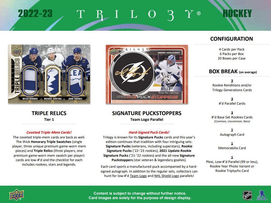 2022-23 Upper Deck Trilogy Hockey Hobby Box: